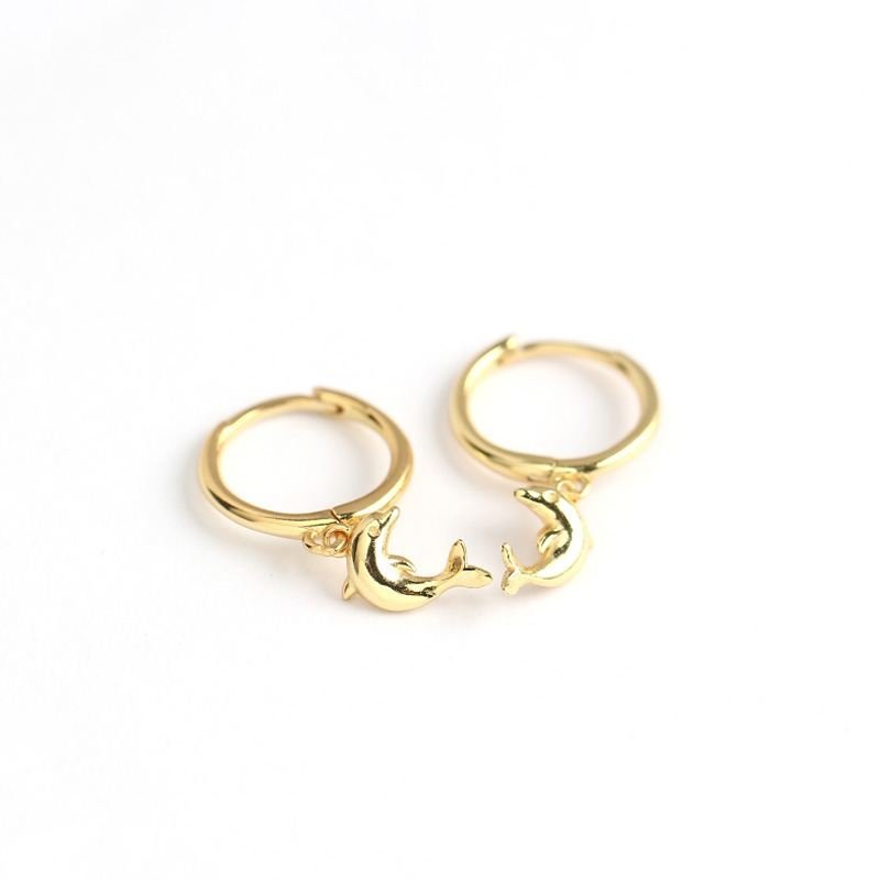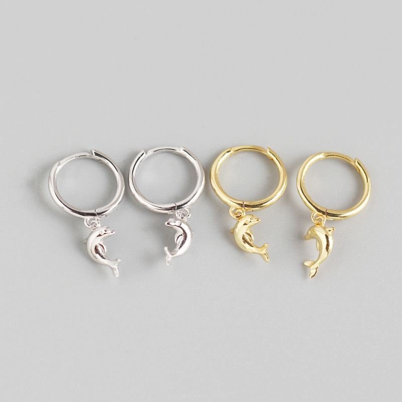 Animal Dolphin 925 Sterling Silver Hoop Earrings