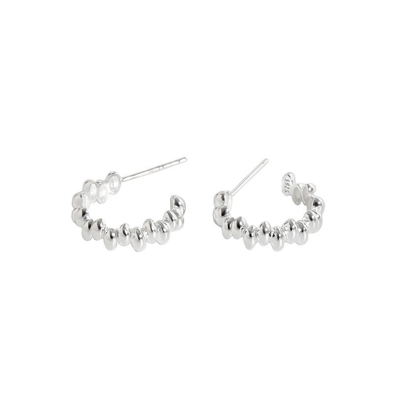 Beads Bubbles Circle 925 Sterling Silver Hoop Earrings