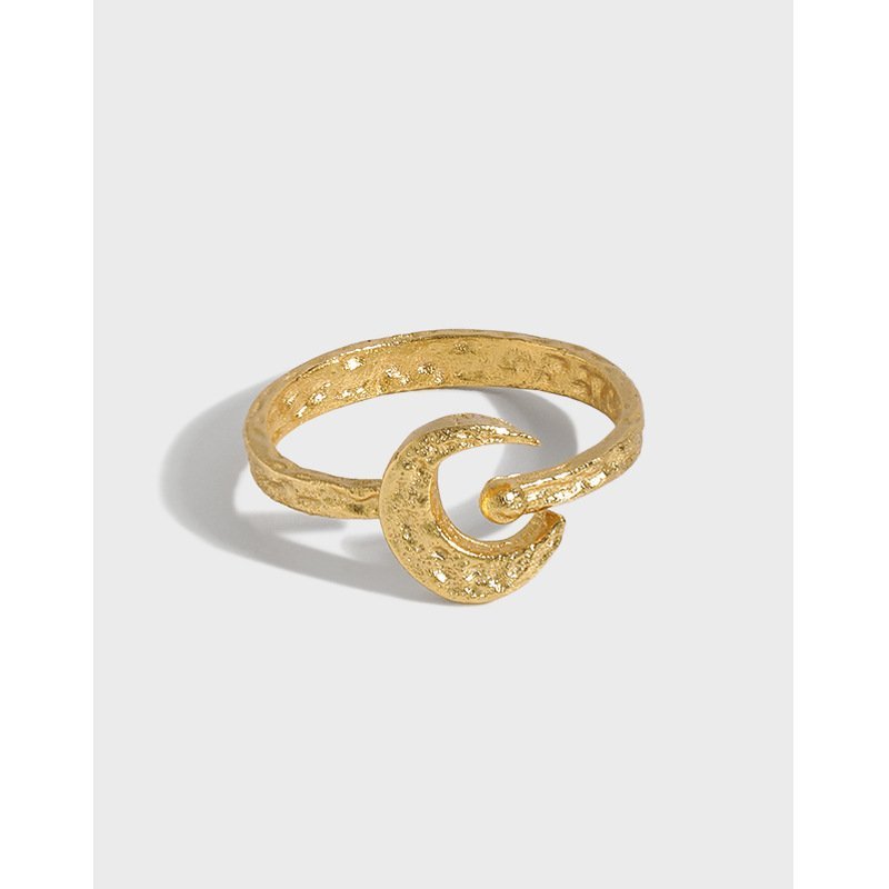 Crescent Moon 925 Sterling Silver Adjustable Ring