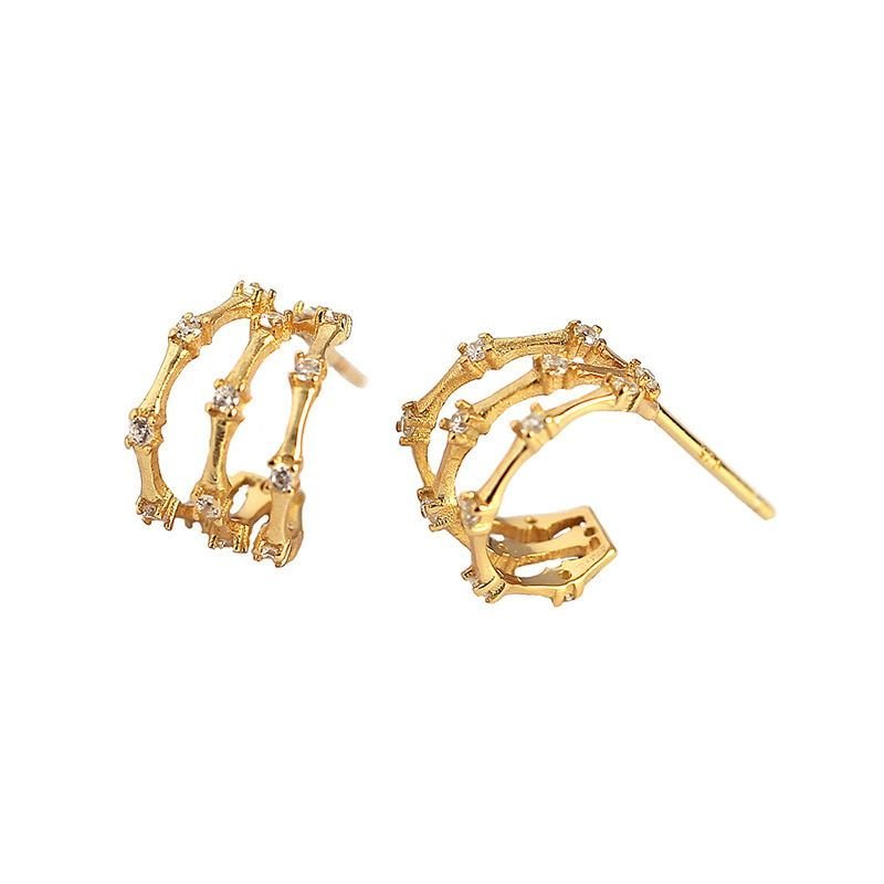 CZ C Shape Slub 925 Sterling Silver Stud Earrings