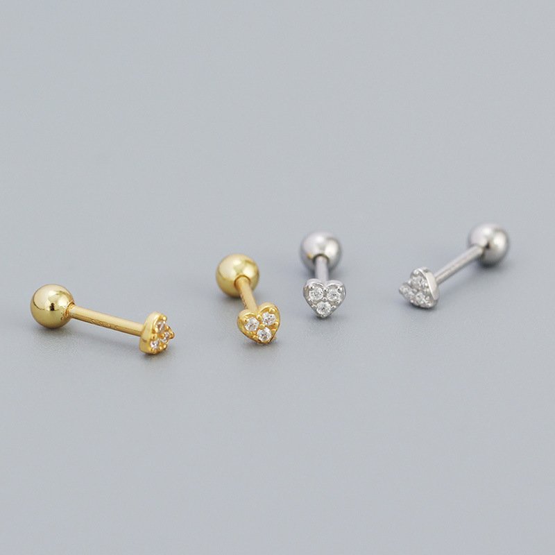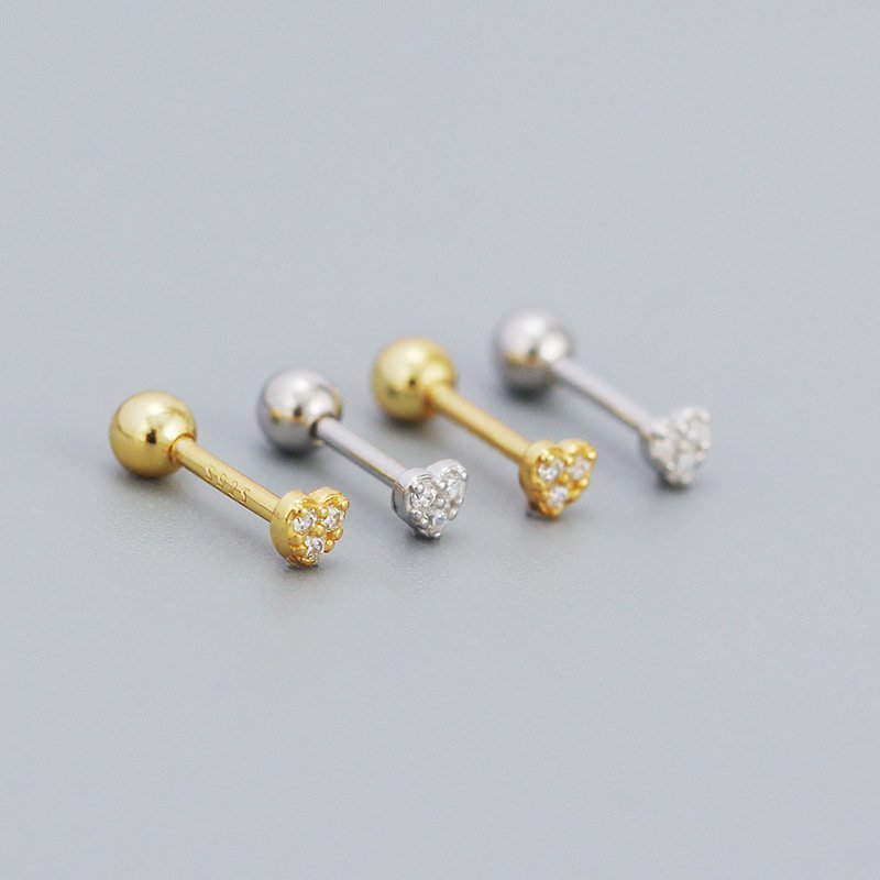 CZ Mini Heart Ball 925 Sterling Silver Stud Earrings
