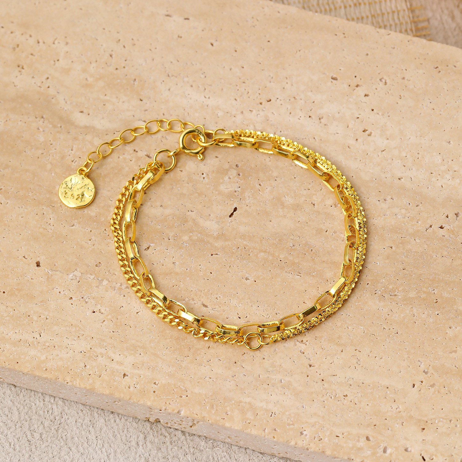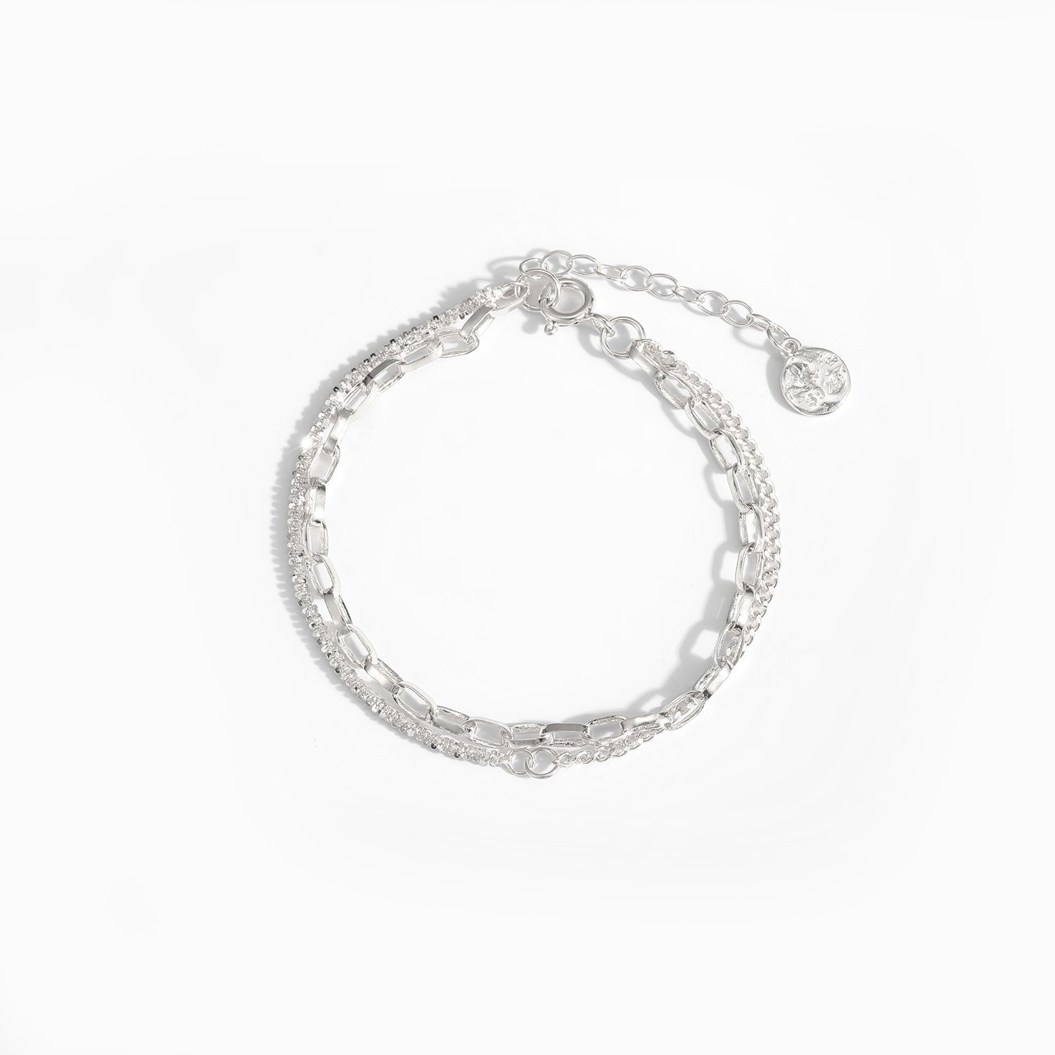 Double Layer Babysbreath Hollow Chain 925 Sterling Silver Bracelet