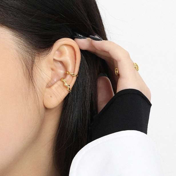 Double Layer Twisted Wave 925 Sterling Silver Non-Pierced Earrings