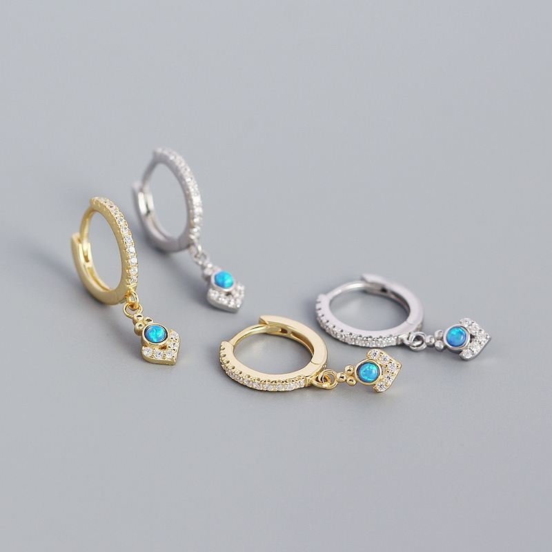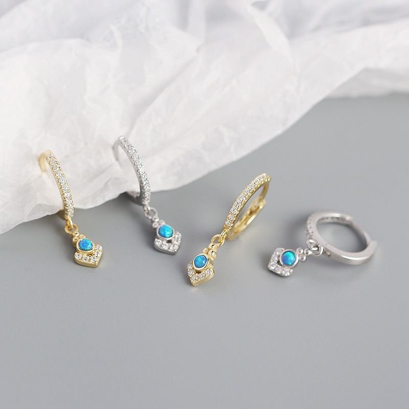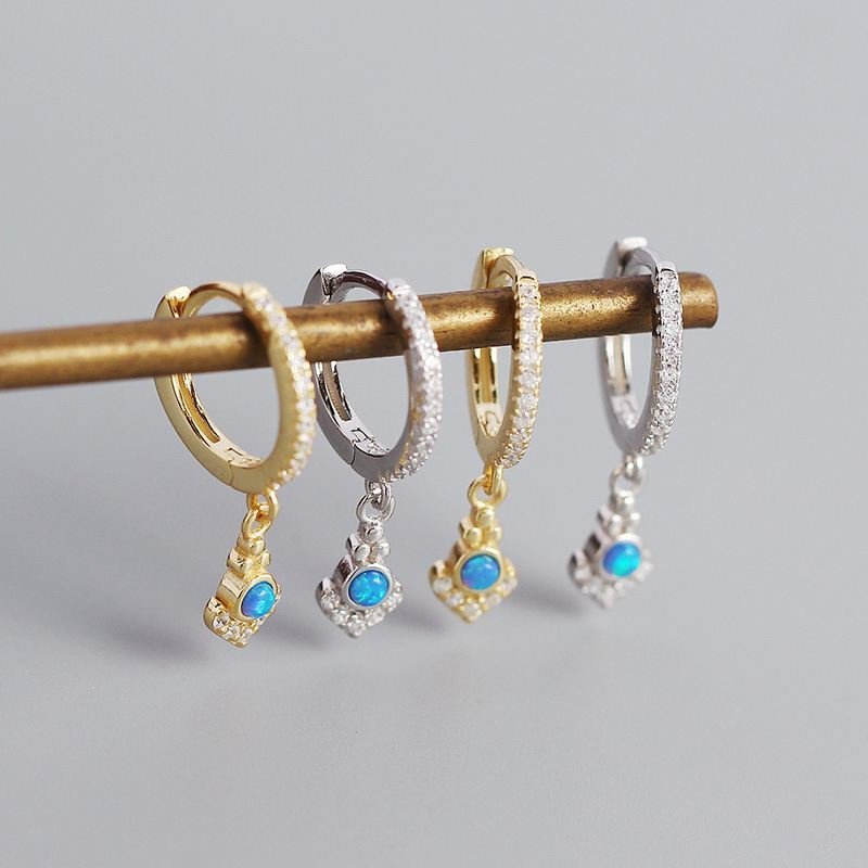 Elegant Geometric Bohemia Created Opal 925 Sterling Silver Hoop Earrings
