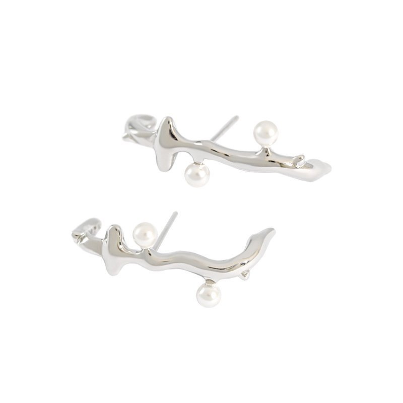 Elegant Irregular Branch Shell Pearls 925 Sterling Silver Stud Earrings