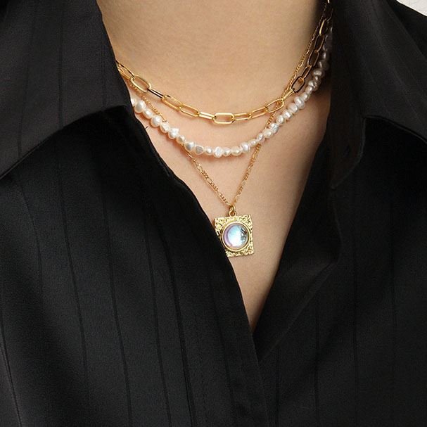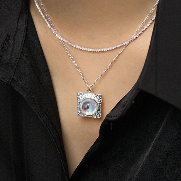 Elegant Round Created Moonstone Square 925 Sterling Silver Necklace