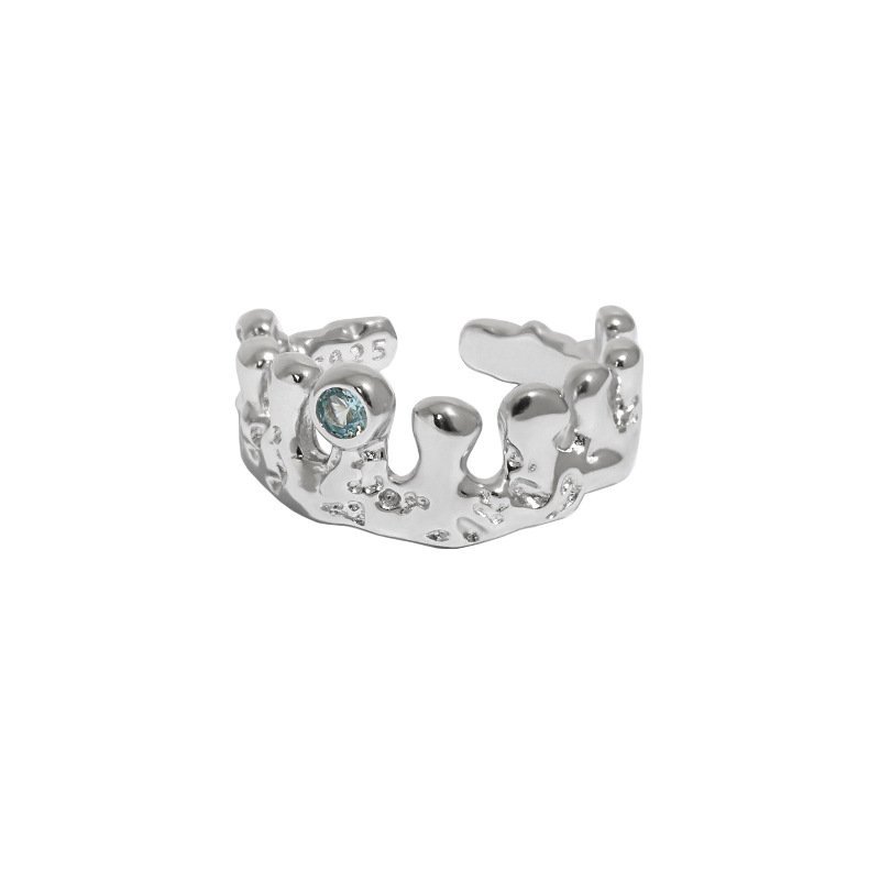 Elegant Round CZ Irregular Crown 925 Sterling Silver Adjustable Ring