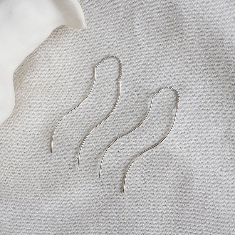 Elegant S Shape Lines Tassels 925 Sterling Silver Dangling Earrings