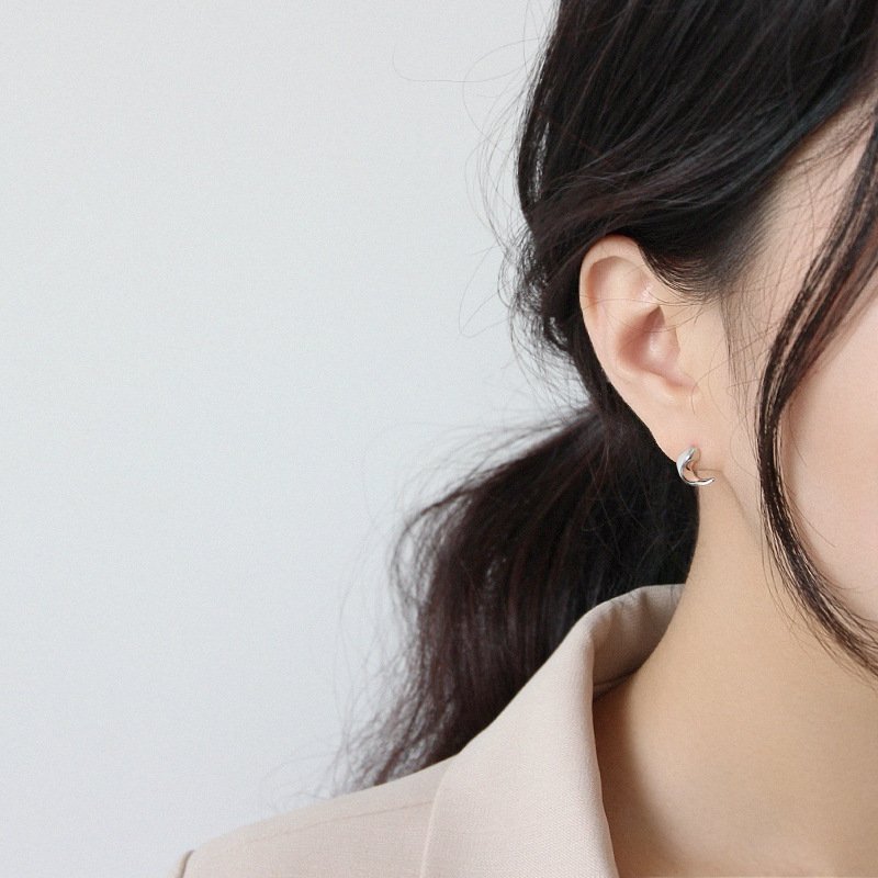 Geometric Crescent Moon 925 Sterling Silver Studs Earrings