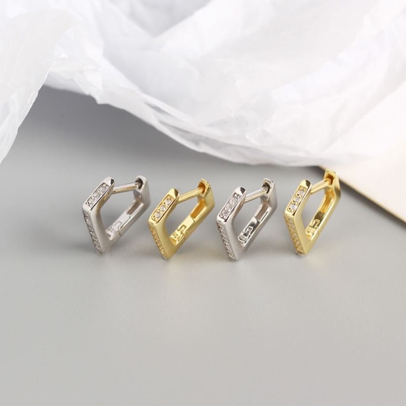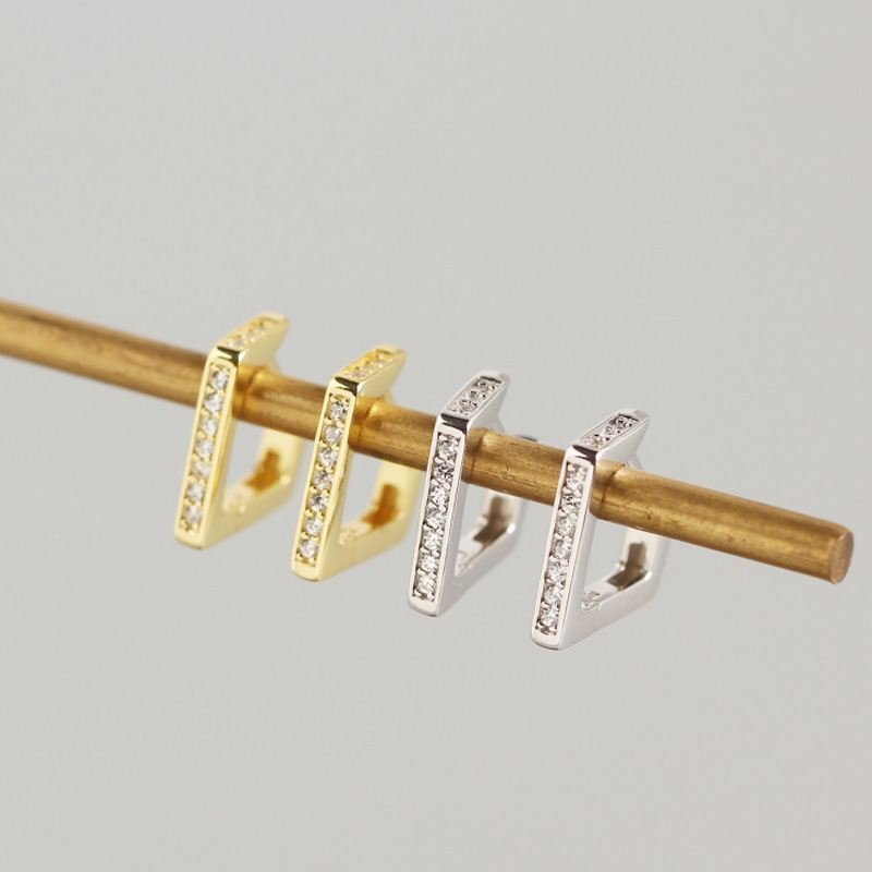 Geometric CZ Hollow Irregular Quadrilateral 925 Sterling Silver Hoop Earrings