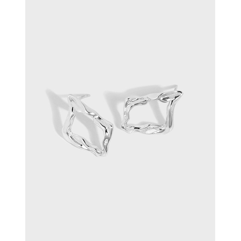 Geometric Hollow Irregular Square 925 Sterling Silver Stud Earrings