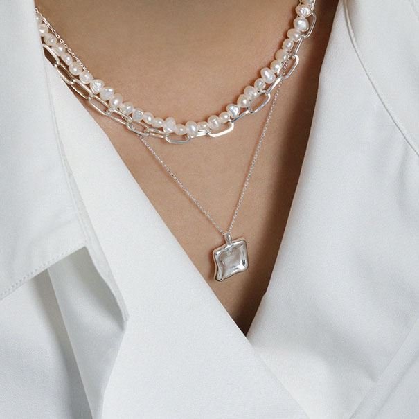Geometric Irregular Square 925 Sterling Silver Necklace