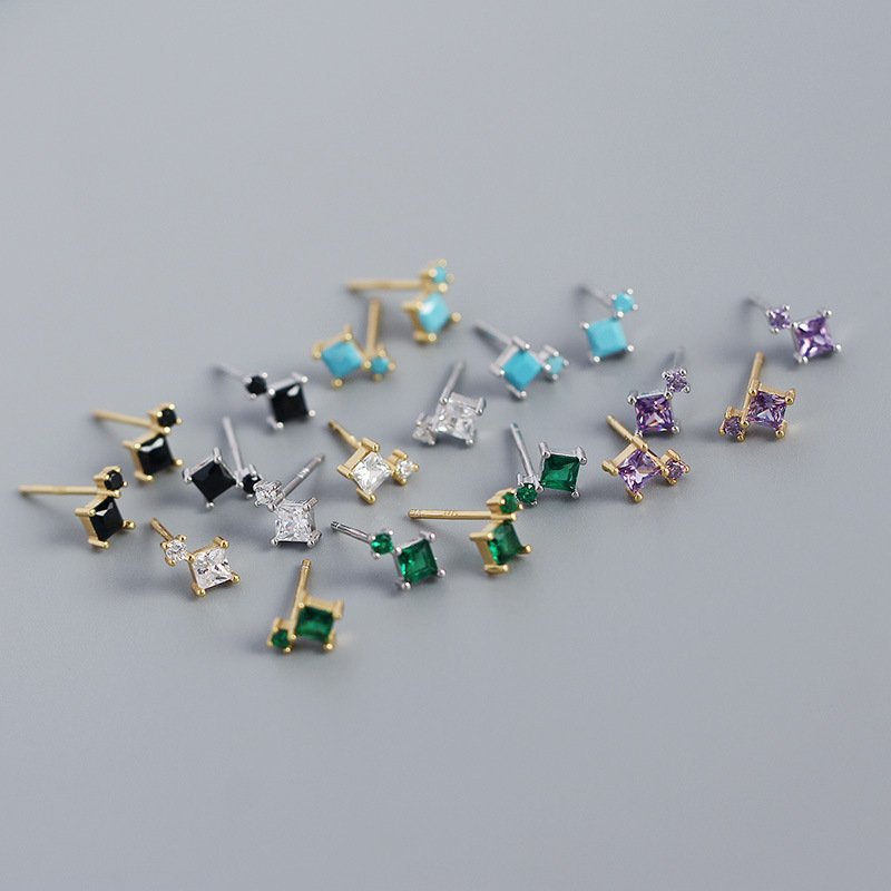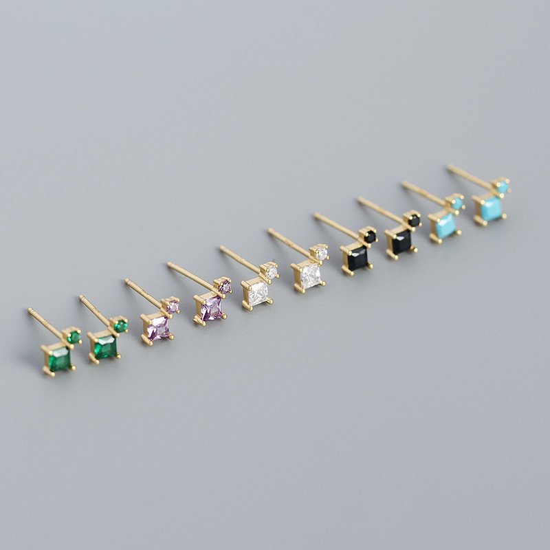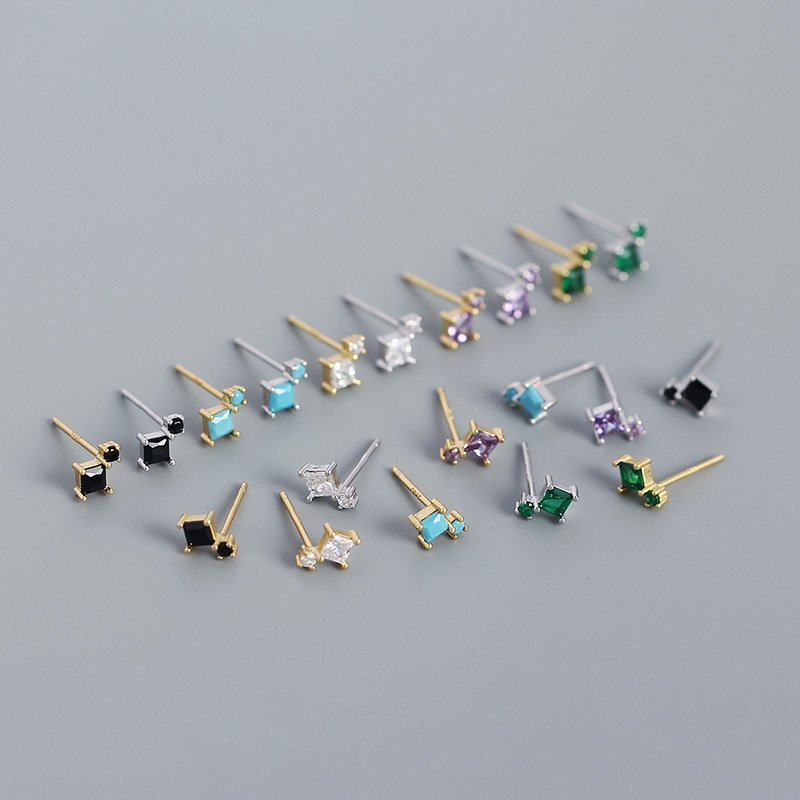 Geometric Mini Square 925 Sterling Silver Stud Earrings