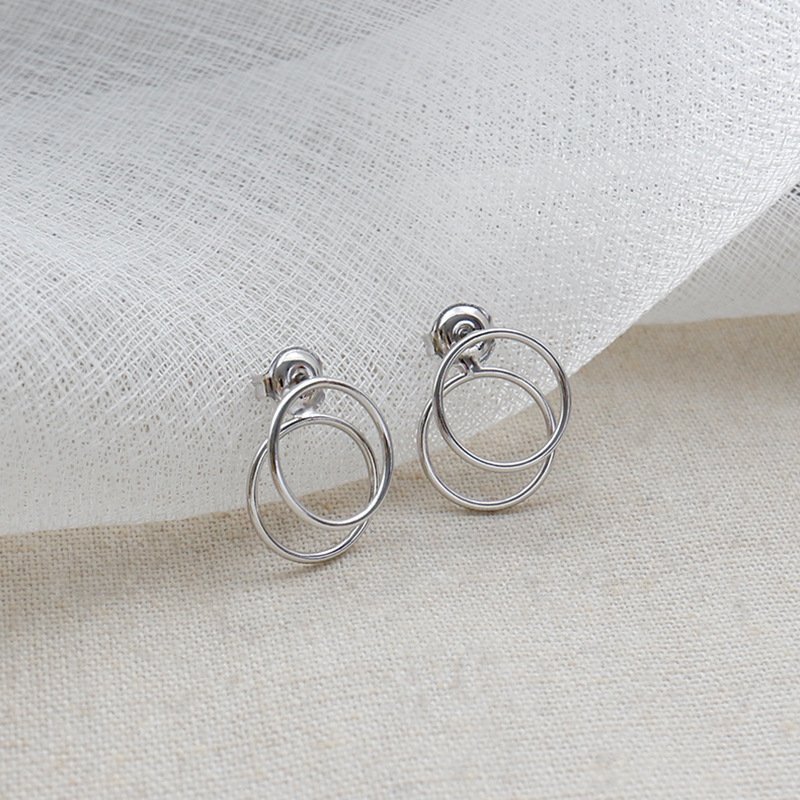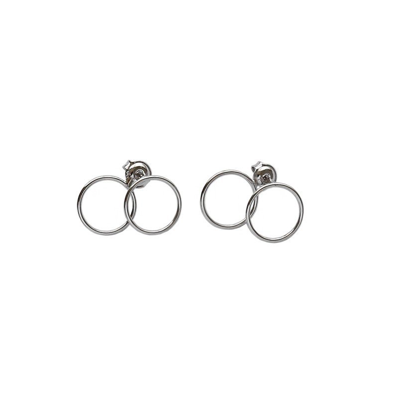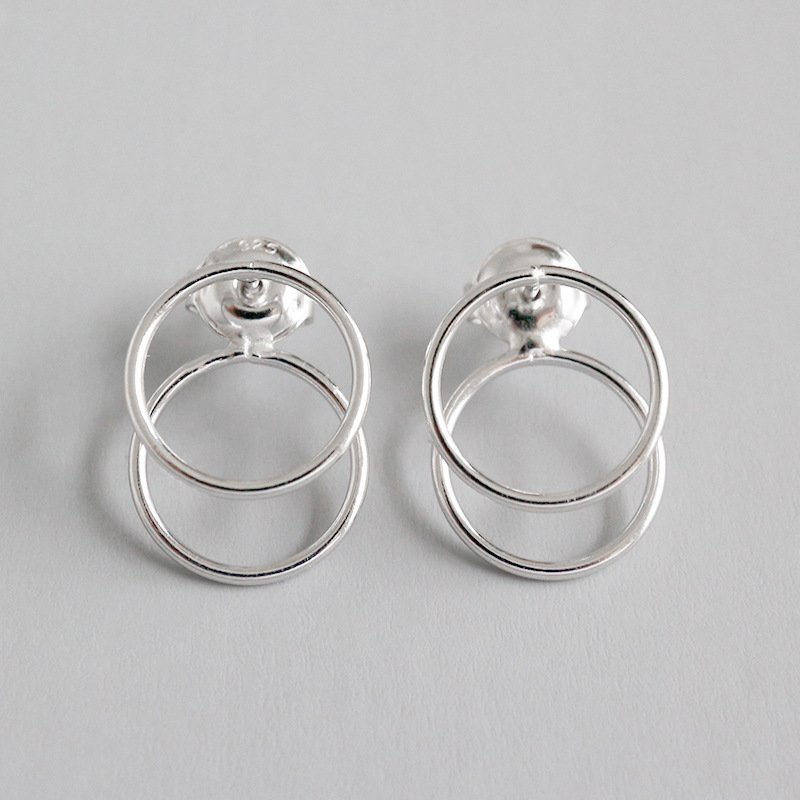 Geometric Two Circles 925 Sterling Silver Stud Earrings