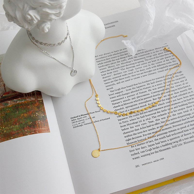 Geometric Wafer Double Layer 925 Sterling Silver Necklace