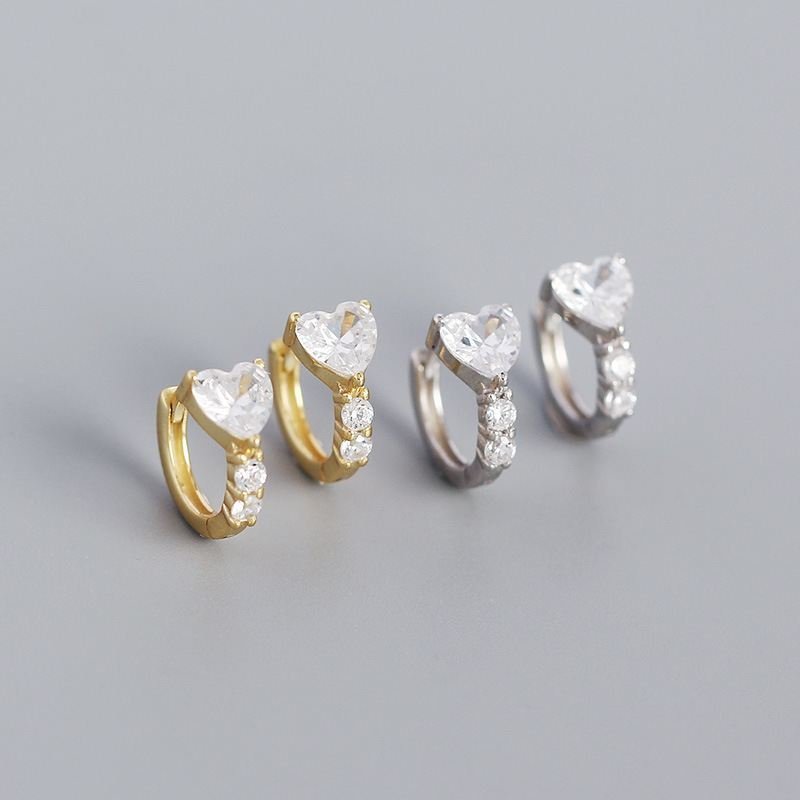 Girl CZ Heart Geometric 925 Sterling Silver Hoop Earrings