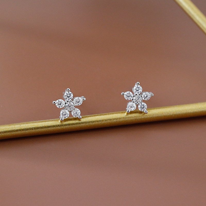 Girl CZ Plum Blossom Flower 925 Sterling Silver Stud Earrings