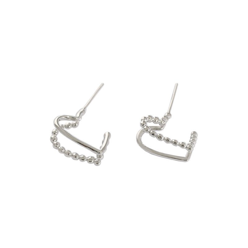 Girl Double Layers Beads Broken Heart 925 Sterling Silver Stud Earrings