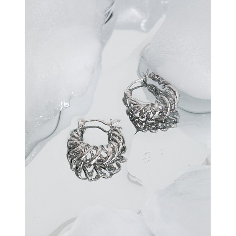 Hollow Spring Twisted 925 Sterling Silver Hoop Earrings