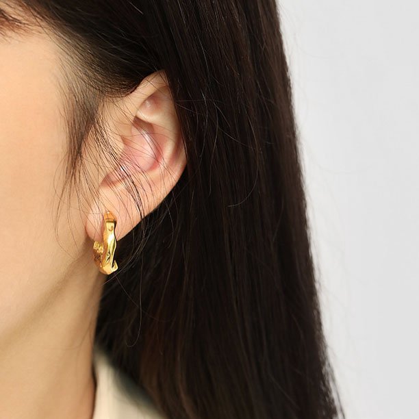 Irregular C Shape 925 Sterling Silver Hoop Earrings