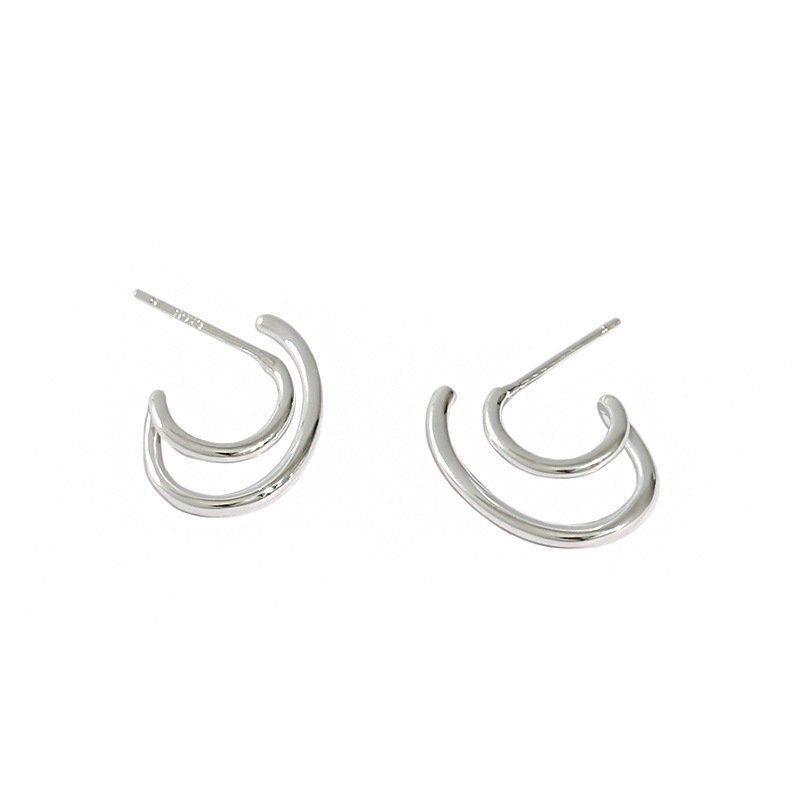 Irregular Double Layer C Shape 925 Sterling Silver Stud Earrings
