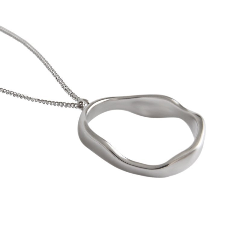 Irregular Geometric Wave Circle 925 Sterling Silver Necklace
