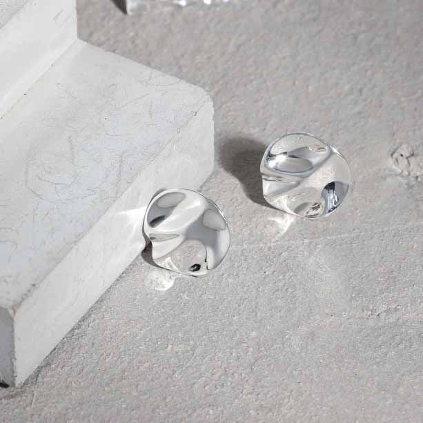 Irregular Round 925 Sterling Silver Stud Earrings