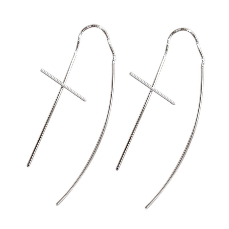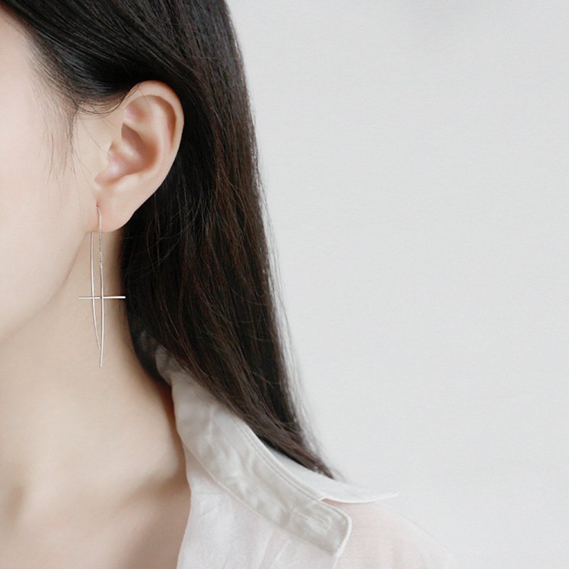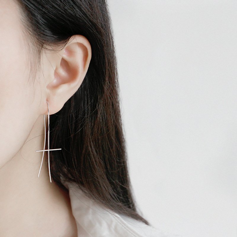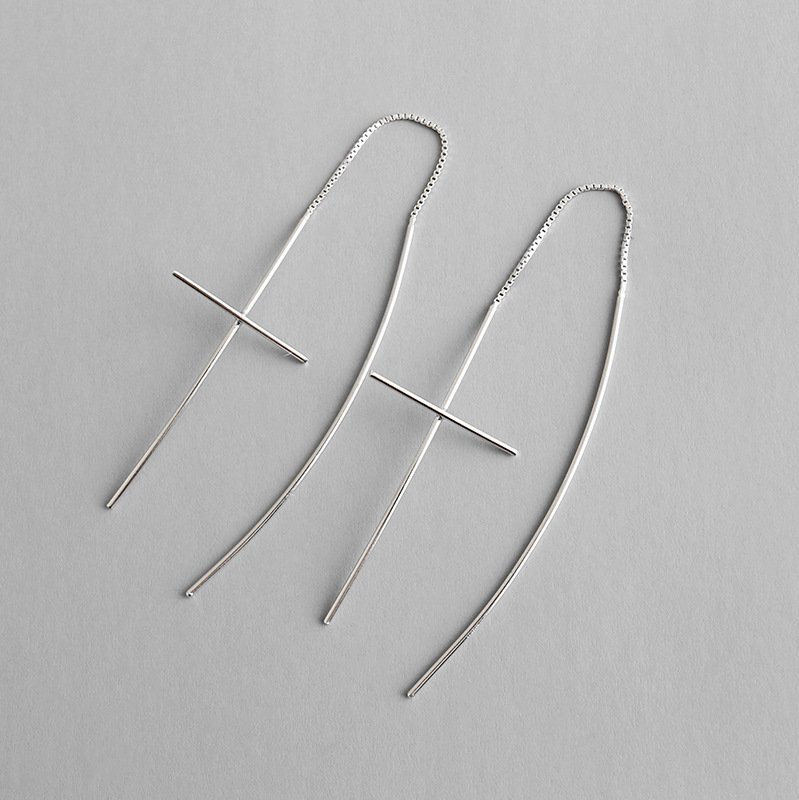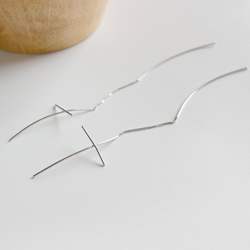 Line Cross 925 Sterling Silver Thread Dangling Earrings