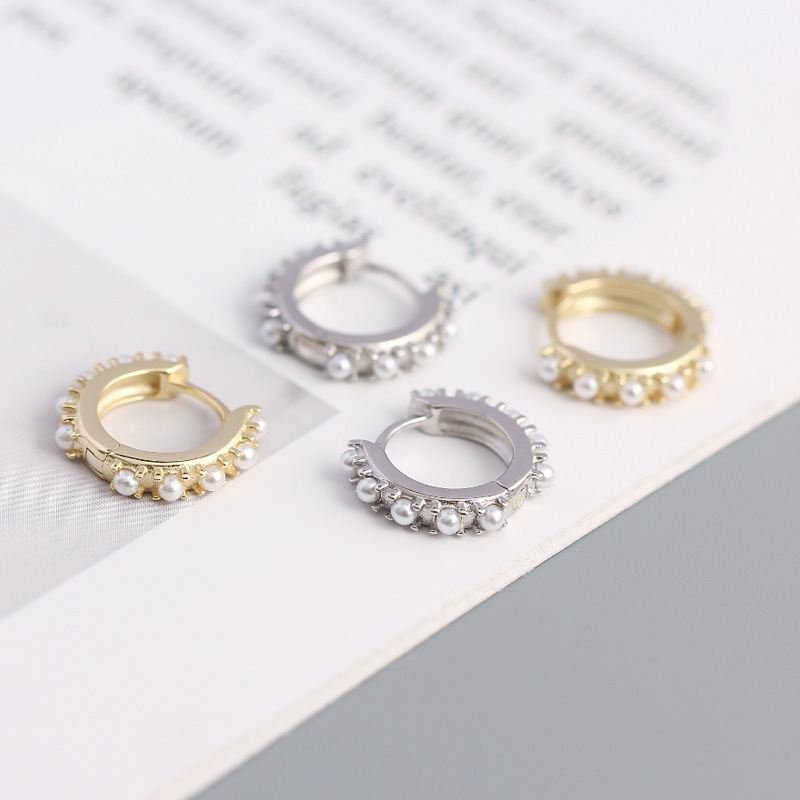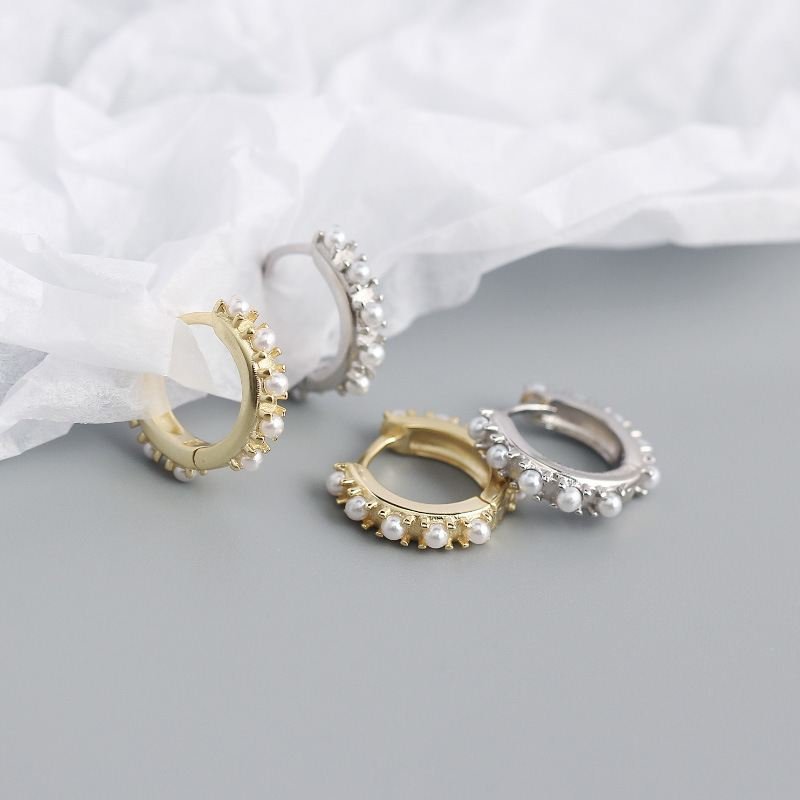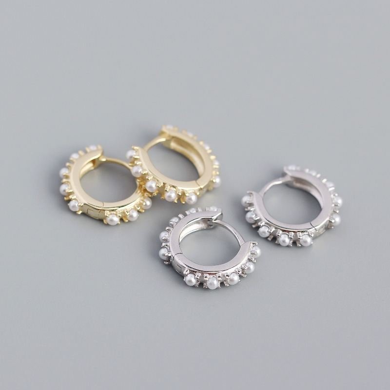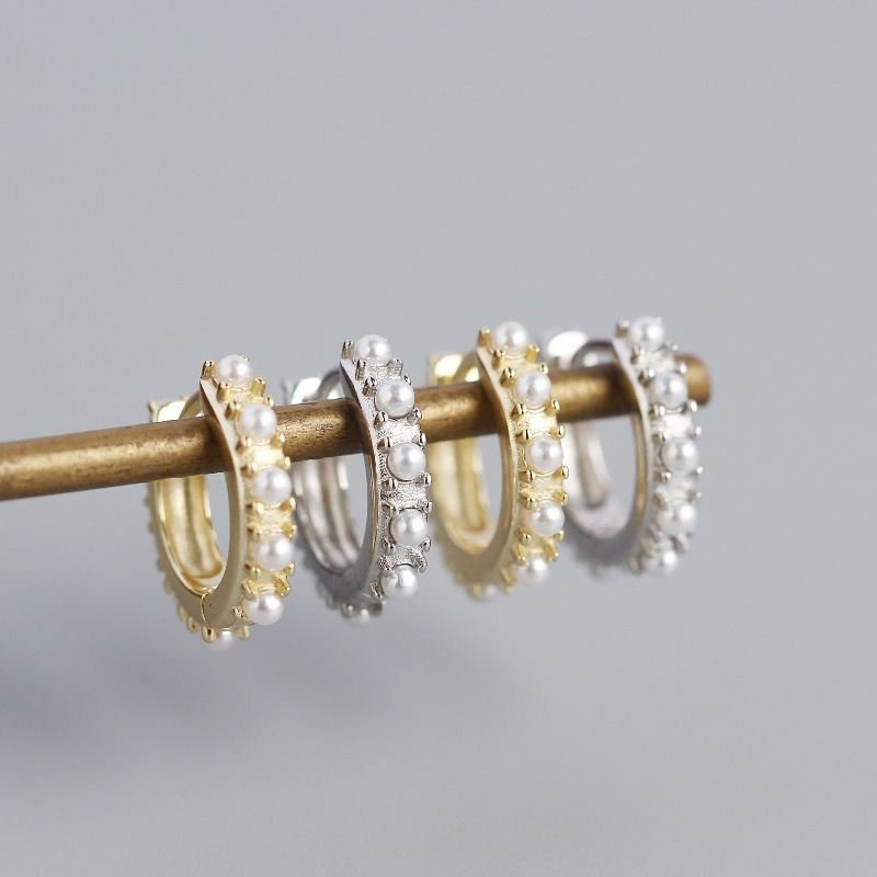 Mini Shell Pearls 925 Sterling Silver Huggie Hoop Earrings
