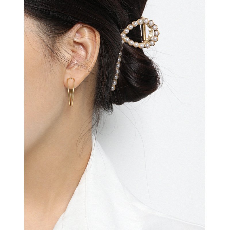 Minimalist Double Layer C Shape 925 Sterling Silver Stud Earrings
