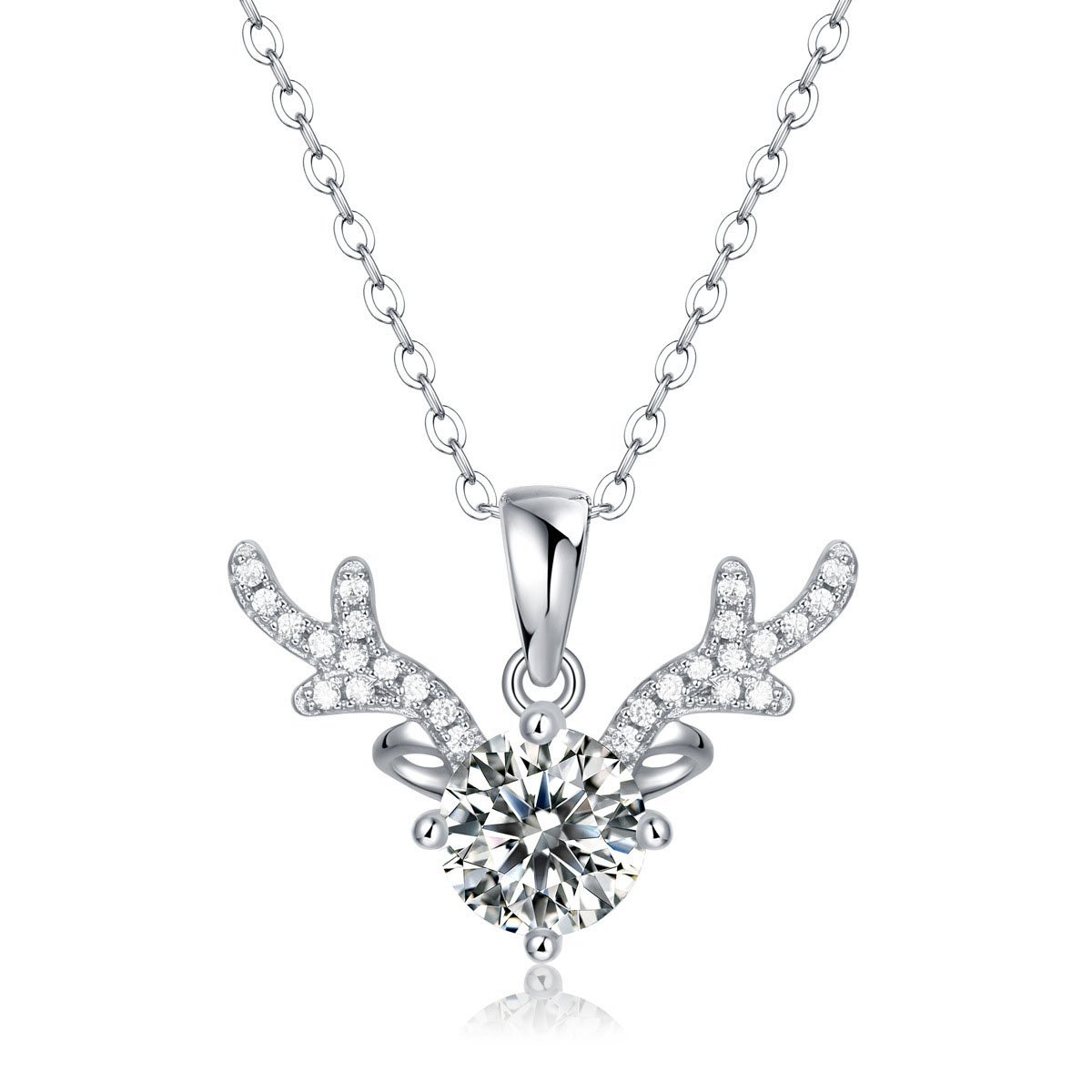 Moissanite CZ Angle Deer 925 Sterling Silver Necklace