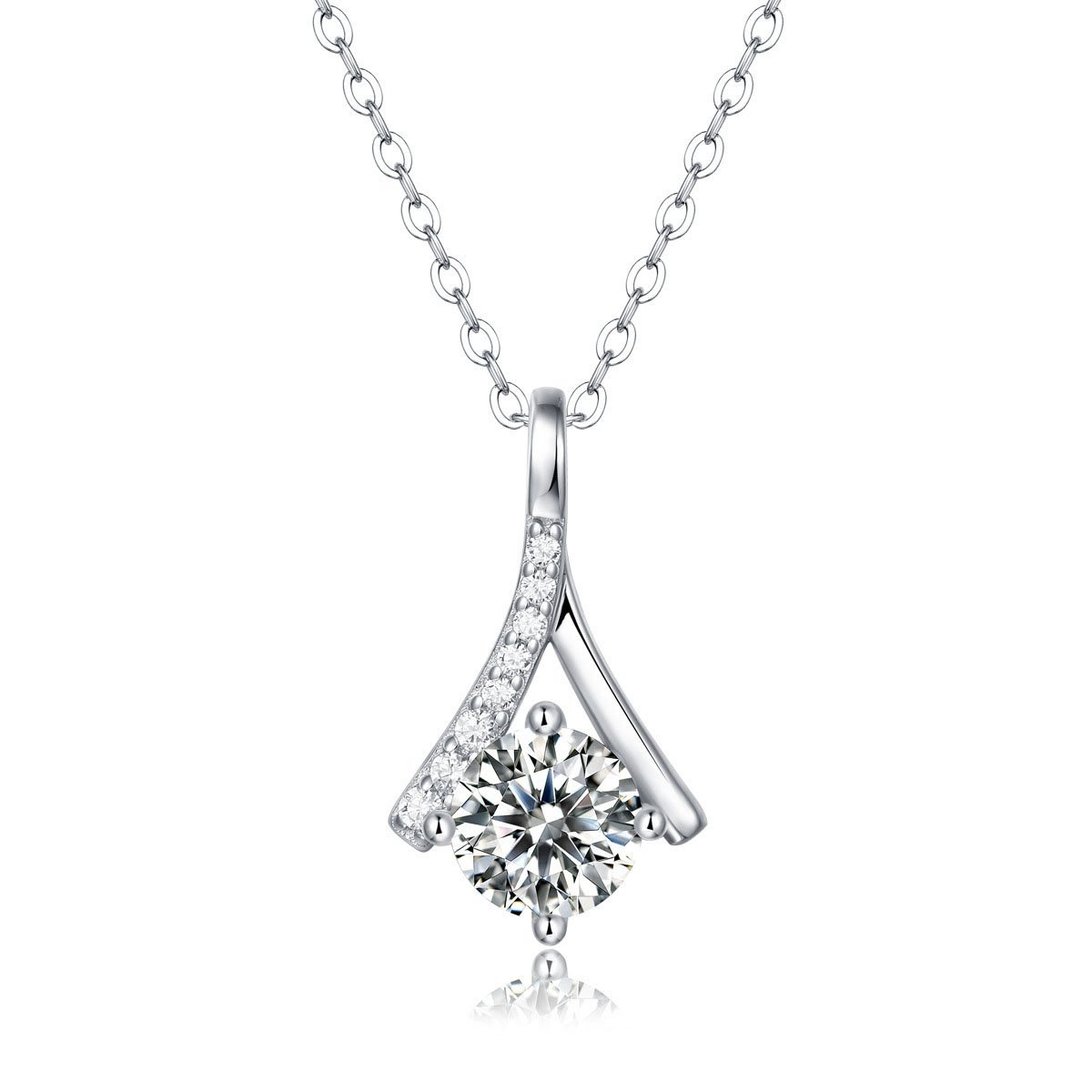 Moissanite CZ V Letter 925 Sterling Silver Necklace
