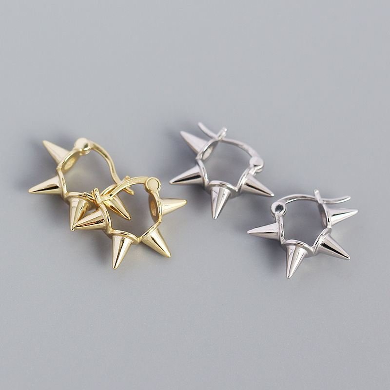 Punk Rivet 925 Sterling Silver Hoop Earrings