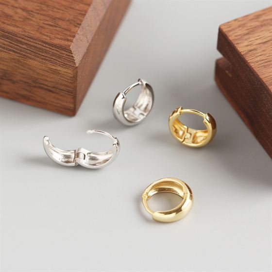 Round Circle 925 Sterling Silver Huggie Hoop Earrings