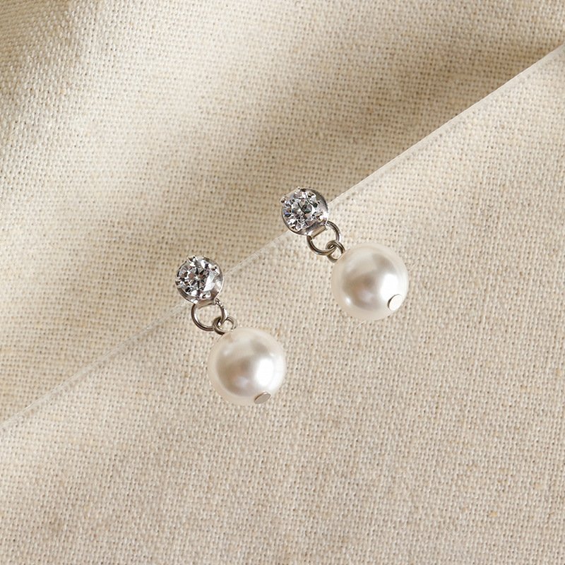 Round Shell Pearls CZ 925 Sterling Silver Stud Earrings