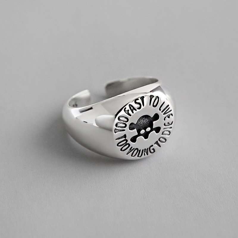 Vintage Skull Head Too fast to live too young to die Letters 925 Sterling Silver Adjustable Ring