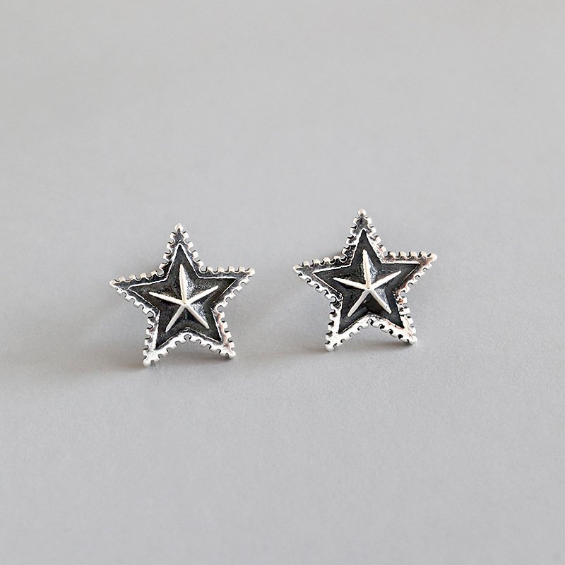Vintage Stars 925 Sterling Silver Stud Earrings