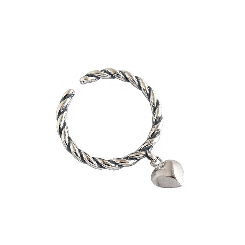 Vintage Twisted Heart 925 Sterling Silver Adjustable Ring